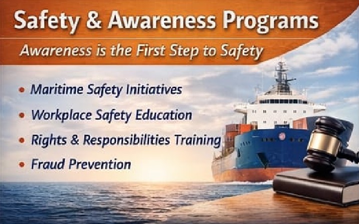 Our work spans seafarer grievance redressal, anti-fraud awareness, ethical placement support, skill development, research, safety education, and career readiness, ensuring that no seafarer or worker is exploited—onshore or onboard.